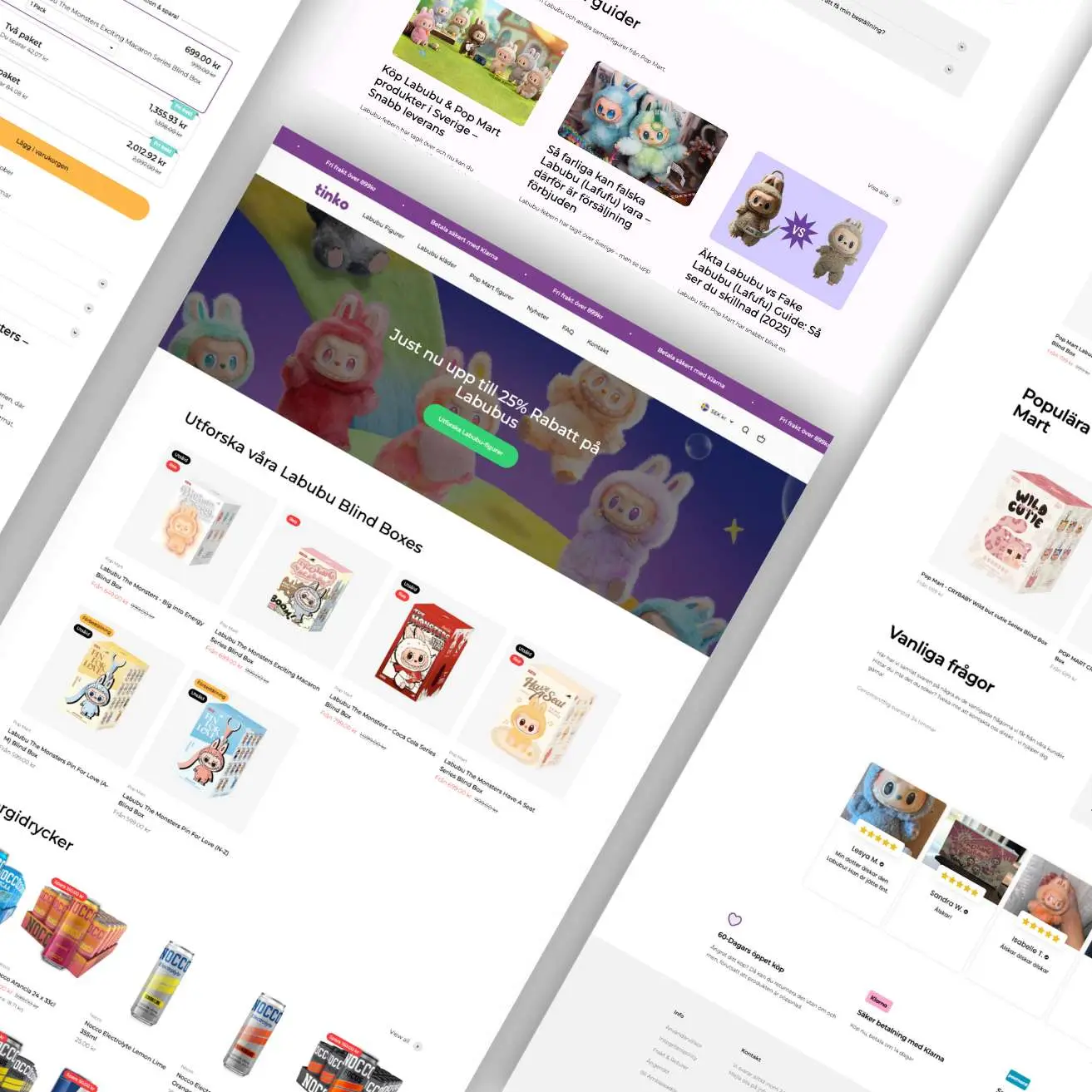 Tinko, en hobbybutik som säljer samlarfigurer, pokemon, godis och dryck fick en modern och användarvänlig hemsida med E-handelsfunktion med hög konverteringsgrad.